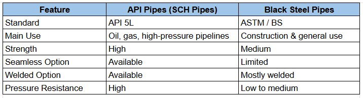 Quick Comparison Between API Pipes VS Black Pipes